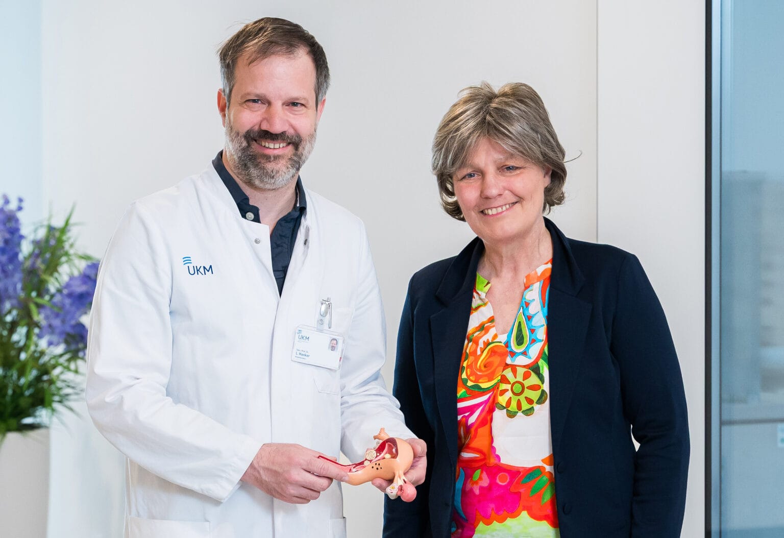 Bild (UKM/Wibberg): „Ich bin unendlich dankbar“, sagt Christina Andrae (r.), die sich von Prof. Lars Hanker und seinem Team gut betreut fühlt.
