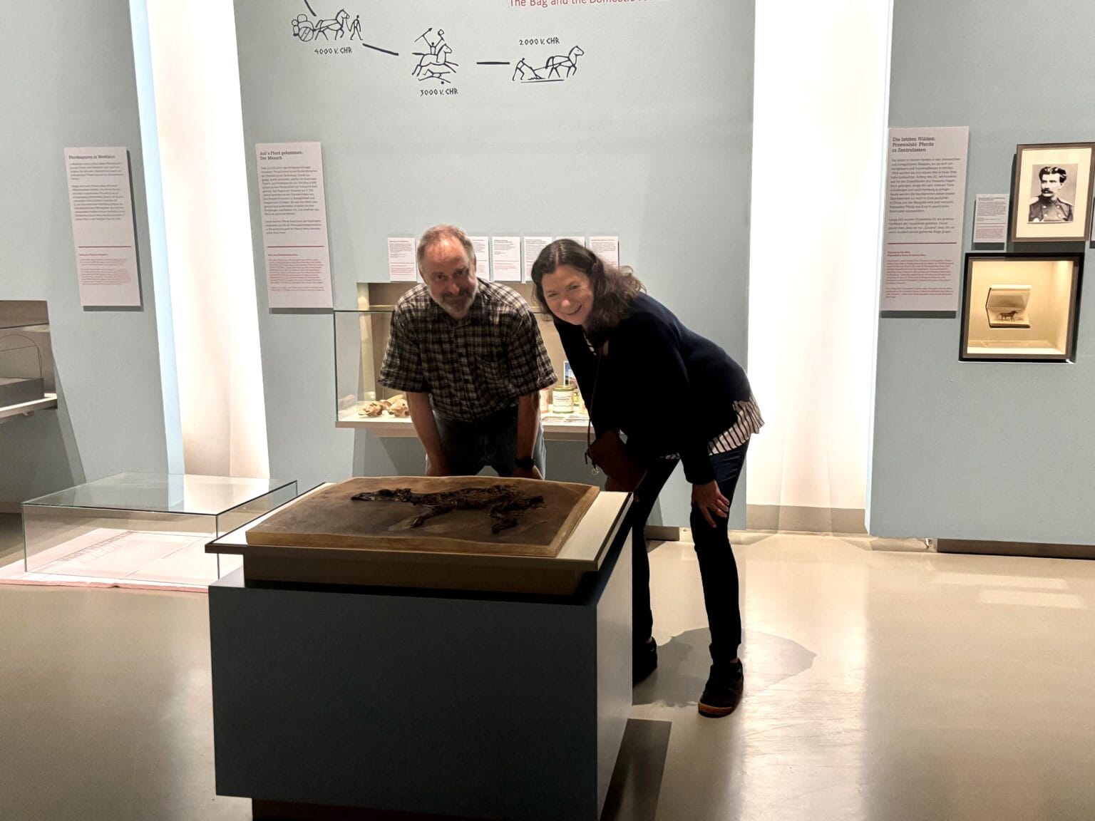 Bildhinweis oben: Prof. Dr. Torsten Wappler u. Sybill Ebers an der neuen Urpferd-Vitrine © WPM