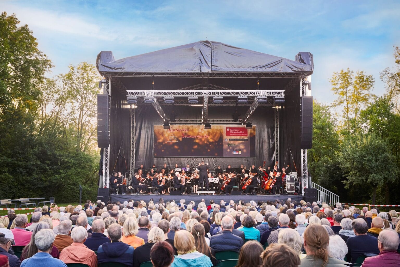 Die Nottbecker Sommernacht hat sich seit Jahren als eins der Konzerthighlights im Kreis Warendorf etabliert. Bereits zum 8. Mal ist das Open-Air-Event am Sonntag, dem 6. Juli, im Innenhof des Kulturguts Haus Nottbeck zu erleben. Die künstlerische Leitung hat in diesem Jahr Andreas Klingel, der mit dem großen Sinfonie-Orchester, dem Jugendchor „Himmelsstürmer“ von Uta Rathmer-Schumacher und dem Solisten Aaron Schröer am Violoncello ein ebenso vielseitiges wie unterhaltsames Musikprogramm präsentiert. Dabei kommen neben der Sinfonie Nr. 40 von Wolfgang Amadeus Mozart und den Rokoko-Variationen von Pjotr Iljitsch Tschaikowski auch die Feuerwerksmusik von Georg Friedrich Händel zu Gehör. In jedem Fall darf sich das Publikum auf ein festliches Konzert-Erlebnis freuen, da in diesem Jahr auch das 50-jährige Jubiläum des Kreises Warendorf gefeiert wird.
